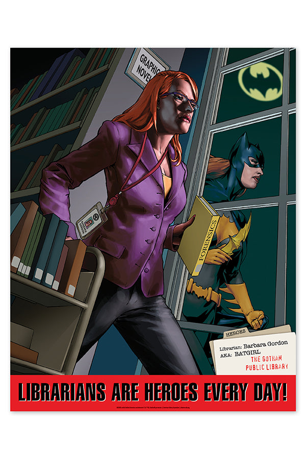 Back by popular demand, we’ve reprinted the original Batgirl poster from 2004. The message is timelier than ever—librarians are heroes every day!