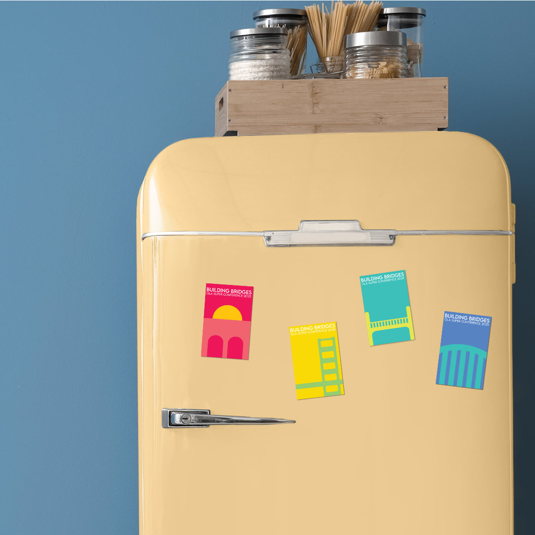 This year's 2025 Super Conference Building Bridges branded 8 pack of postcards.