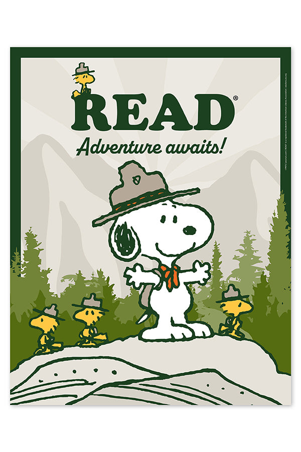 Invite readers to embark on a literary adventure with everyone's favorite Beagle Scout, Snoopy, in this playful poster. In 1974 Charles Shultz introduced readers to the Beagle Scouts, Snoopy’s rag-tag group of outdoor adventurers including Woodstock and other feathered friends. In celebration of 50 years of Beagle Scouts, Simon Spotlight, an imprint of Simon & Schuster, is publishing Welcome to Camp Snoopy and Snoopy’s Beagle Scout Tales in May. Camp Snoopy is a perfect theme for summer reading—and beyond. Special thanks to Peanuts Worldwide.