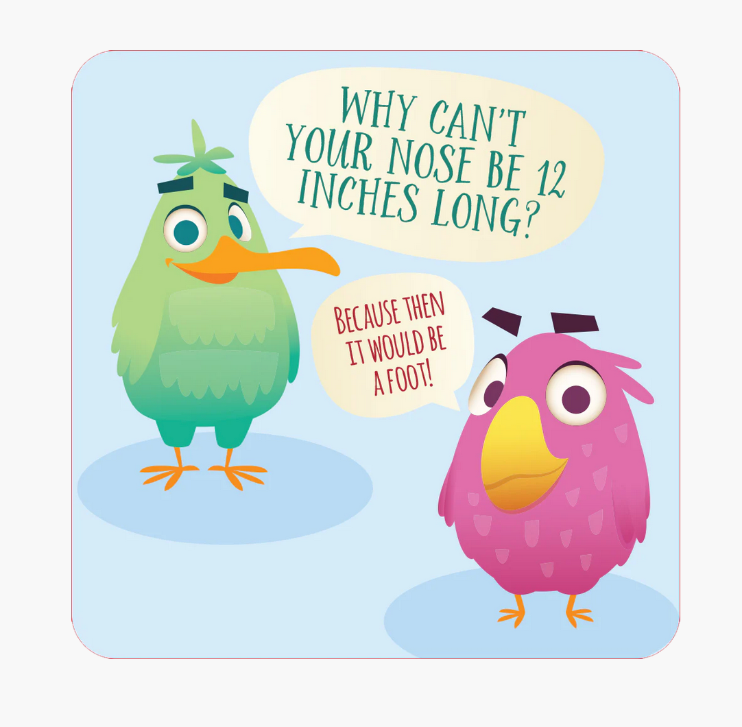 Brighten their day and give 'em a giggle with our Lunch Box Jokes, featuring funny, silly jokes and riddles and colourful pictures on small coated cards! Vibrant artwork makes every card a delight.