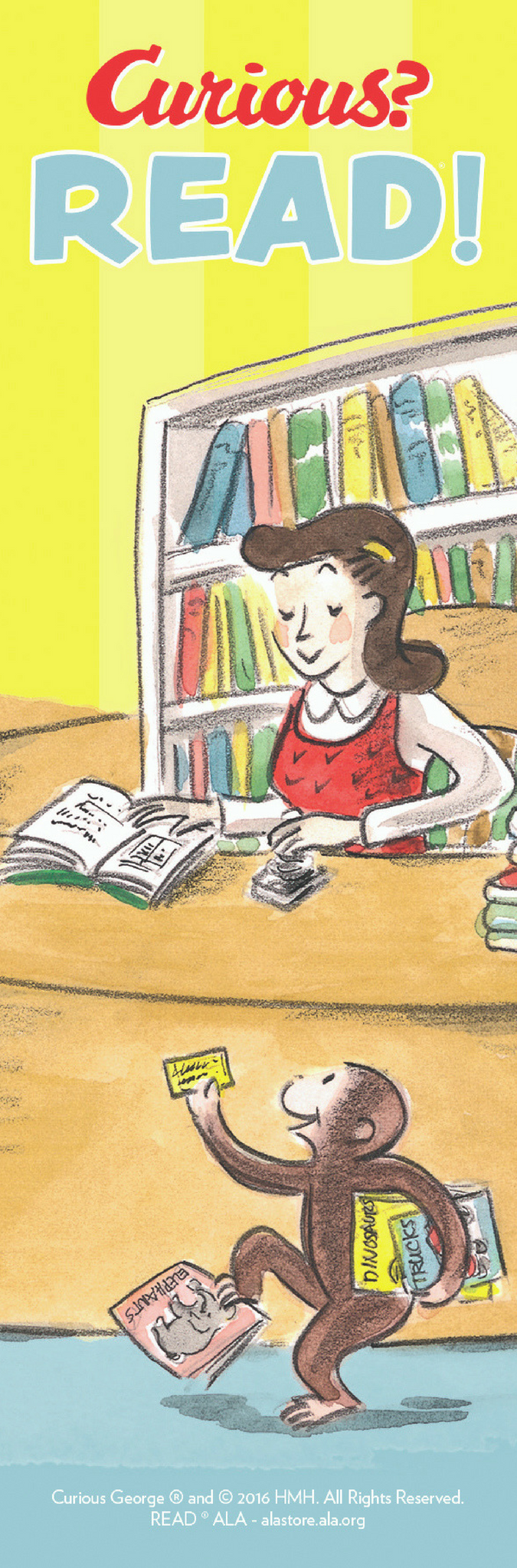 2016 marks the 75th anniversary of H.A. Rey's classic tale Curious George. ALA Graphics is marking this monumental milestone with a new poster and bookmark that complement an array of available Curious George items. Use this bookmark to welcome curious readers and their caregivers. Keep kids curious with their good friend Curious George—and watch them grow. Use the hashtag #GetCurious to share your celebrations. Special thanks to Houghton Mifflin Harcourt.