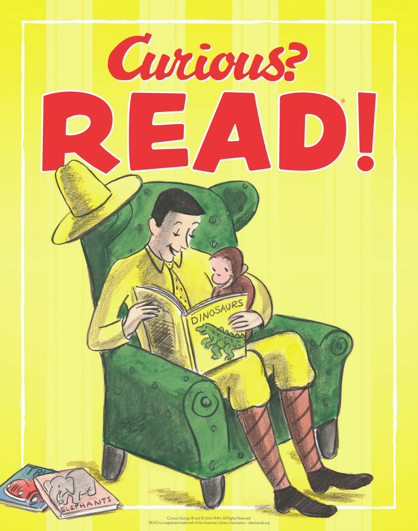 ALA marked the 75th anniversary of H.A. Rey's classic tale Curious George (2016) with a new poster and bookmark that complement an array of available Curious George items. Use the new poster to welcome curious readers and their caregivers. Keep kids curious with their good friend Curious George—and watch them grow. Use the hashtag #GetCurious to share your celebrations. Special thanks to Houghton Mifflin Harcourt.