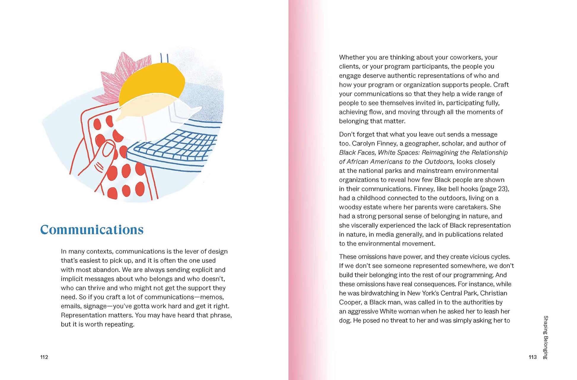 The good news is that you can use design to create feelings of inclusion in your organization: rituals that bring people together, spaces that promote calm, roles that create a sense of responsibility, systems that make people feel respected, and more. You can’t force feelings, but in Design for Belonging, author and educator Susie Wise explains how to use simple levers of design to set the stage for belonging to emerge. For example, add moveable furniture to a meeting space to customize for your group size; switch up the role of group leader regularly to increase visibility for everyone; or create a special ritual for people joining or leaving your organization to welcome fresh perspectives and honor work well done.