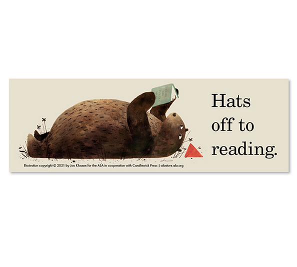 Bear—the star of Jon Klassen’s Geisel Honor book, I Want My Hat Back—takes his hat off to reading in this new bookmark. With the wry humor Klassen is known for, these materials will bring a smile to readers of all ages. Klassen’s “hat trilogy,” which also includes the Caldecott Medal-winning This Is Not My Hat, was capped off by We Found a Hat in 2016. His most recent book is the New York Times best seller, The Rock from the Sky. Special thanks to Jon Klassen and Candlewick Press.