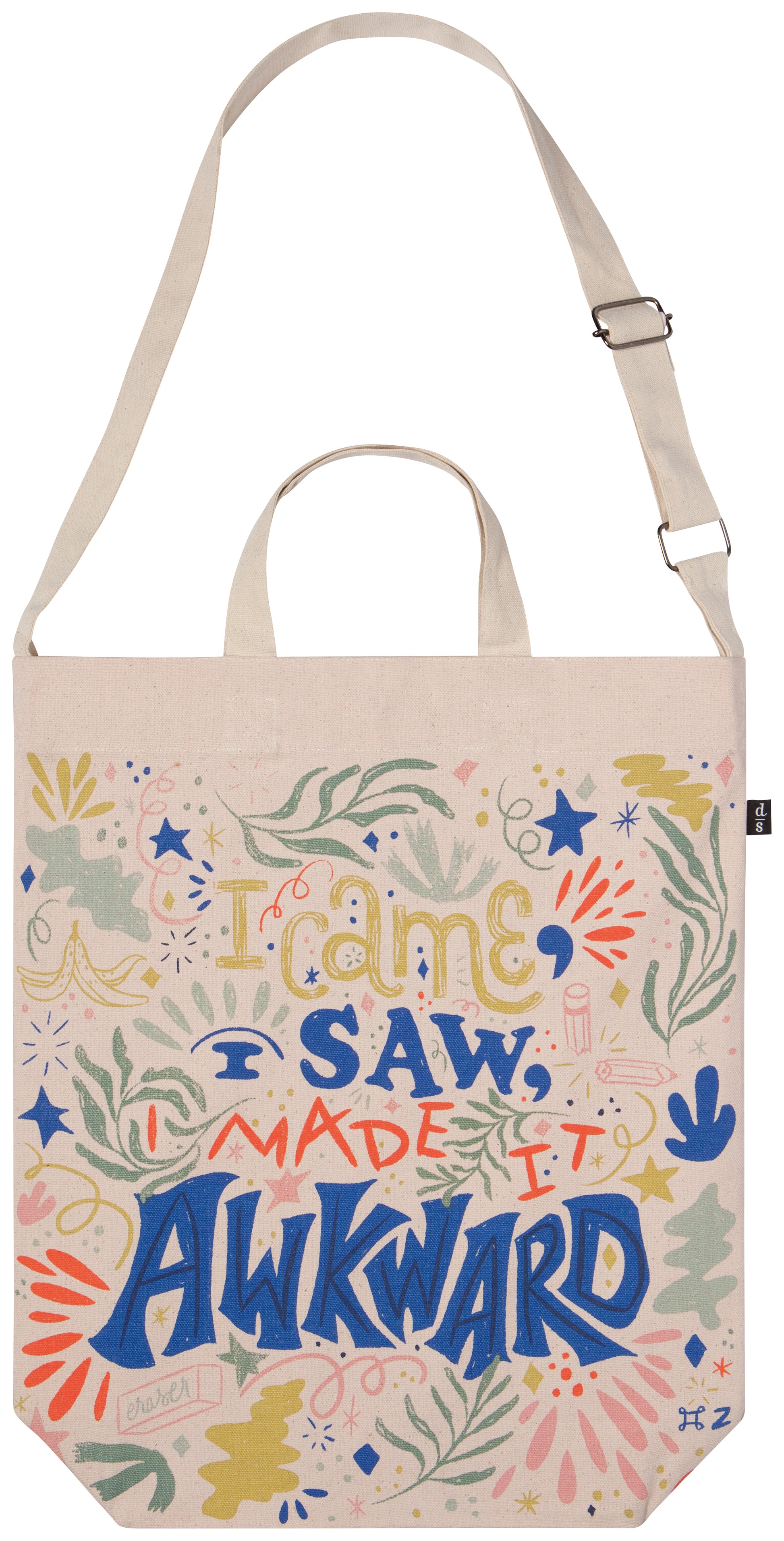 Whether you're headed to the grocery store, library, or work, there's a team tote up for the task. A cross-body adjustable strap, two smaller handles and interior pocket with magnetic closure keep your belongings safe and sound. A fun designer blurb is printed on the inside pocket.