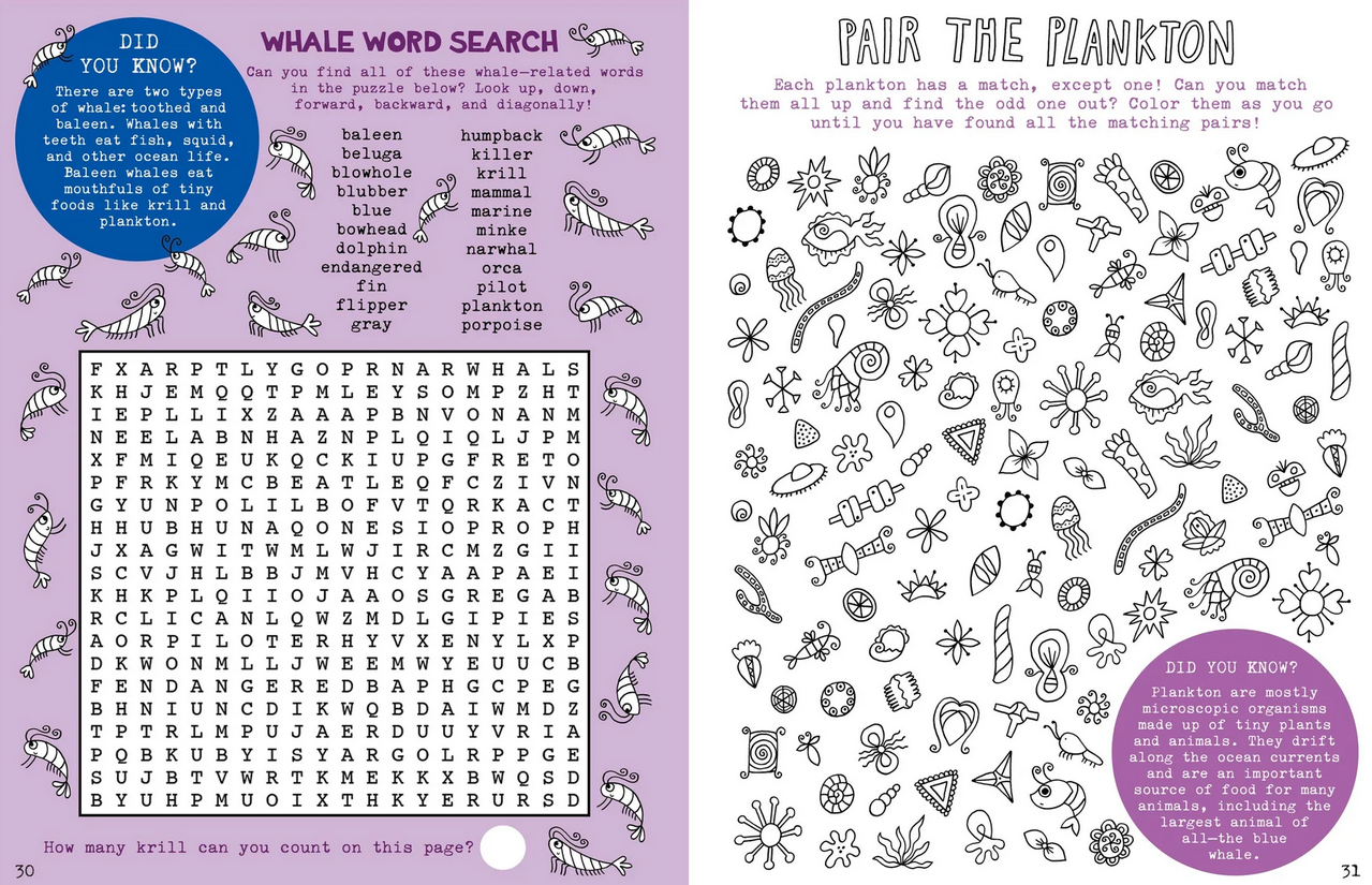 Tired of the young'uns being wired? Set aside those devices and immerse them in an adventure-packed analog activity book! Perfect for budding oceanographers and marine biologists, this activity book has plenty of ocean facts make this book educational too (don't tell)!