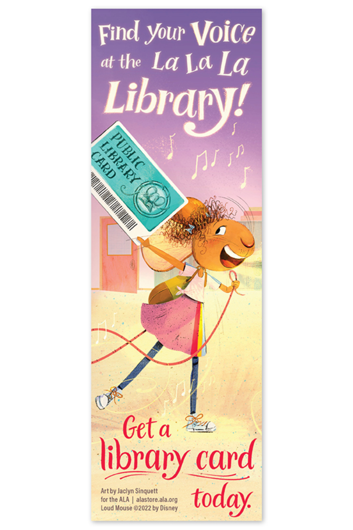 “Find your voice at the la, la, la, library—get a library card.” So says Dee (aka Loud Mouse) in this new poster. Dee loves to sing. Everything, all the time! So, when her teacher asks everyone to share something with the class, Dee shares a song. And as she sings la, la, la, LOUDly in front of her class for the first time, something extraordinary happens. . .