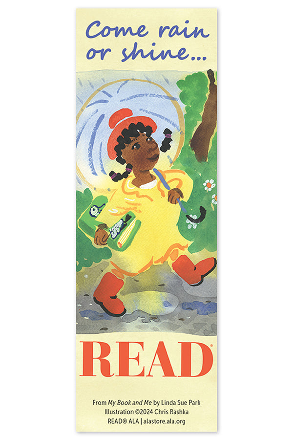 Featuring art from the forthcoming My Book and Me, written by Linda Sue Park and illustrated by Chris Raschka, this new poster and bookmark will remind everyone that reading is the perfect activity, no matter the weather. Raschka won the Caldecott Medal for The Hello, Goodbye Window in 2006 and A Ball for Daisy in 2011. Park received the Newbery Medal in 2002 for her novel A Single Shard. My Book and Me arrives June 4, 2024.