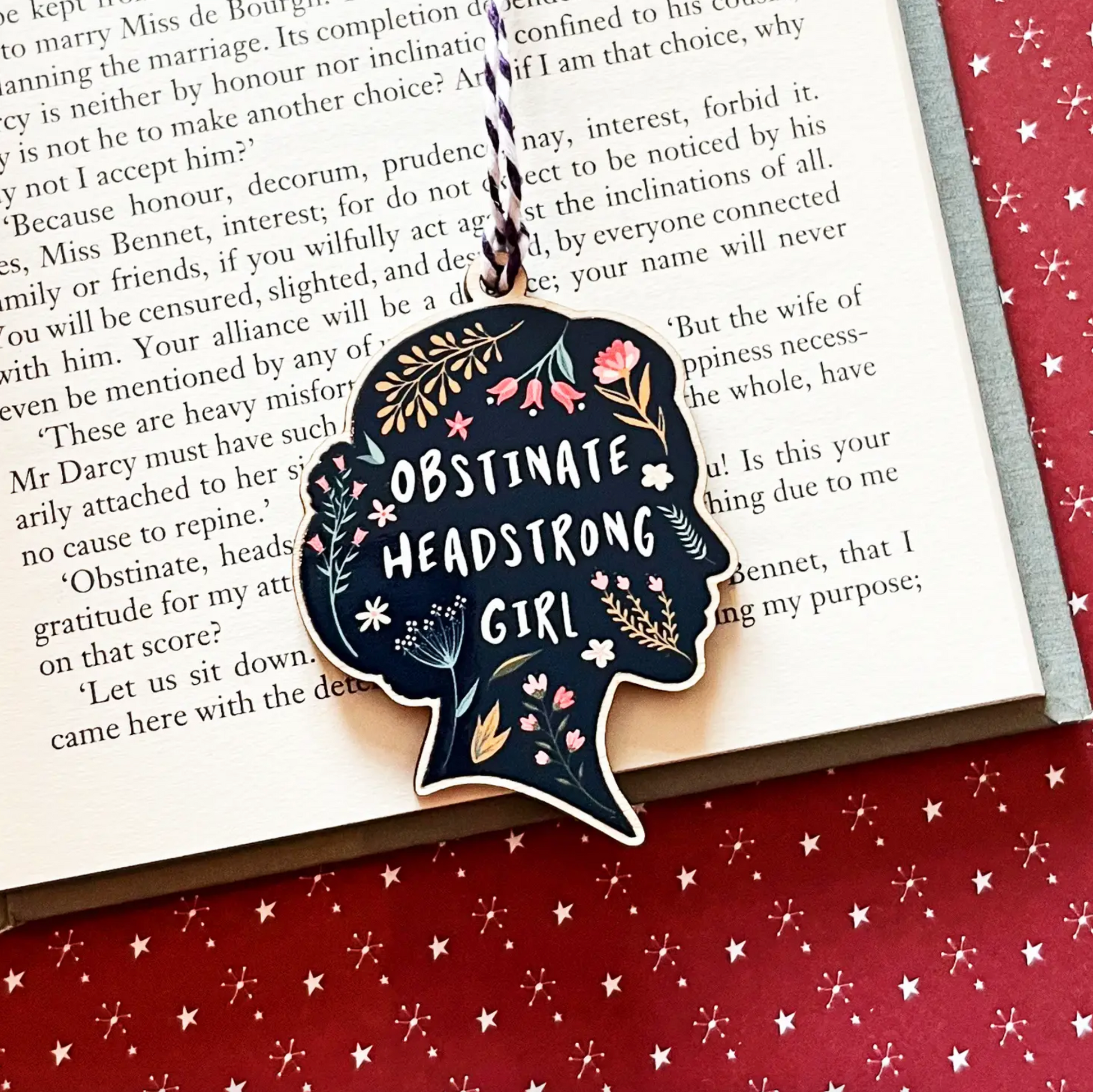 Inspired by Jane Austen's Pride and Prejudice, this wooden decoration is perfect for fans of classic literature. The delicate silhouette design features the famous words: Obstinate Headstrong Girl