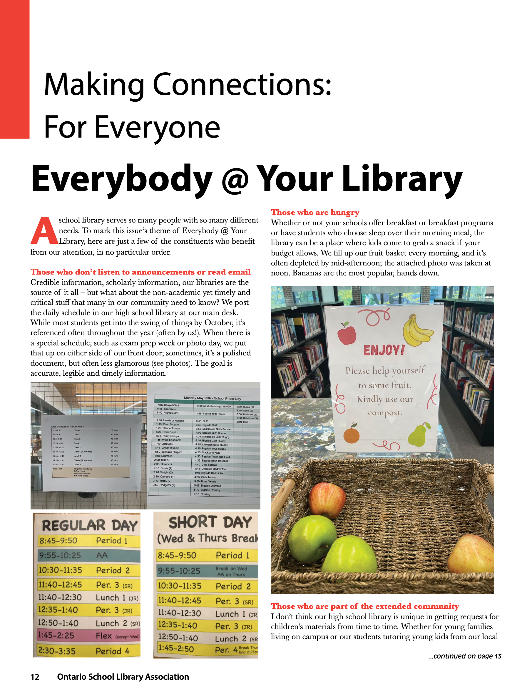 The Teaching Librarian is the official magazine of the Ontario School Library Association (OSLA). It is published three times a year to support OSLA members in providing significant and effective library programs and services. The Teaching Librarian also promotes library programs and curriculum development that furthers exemplary educational objectives. It fosters effective collaboration within the school library community and provides a forum to share experience and expertise.