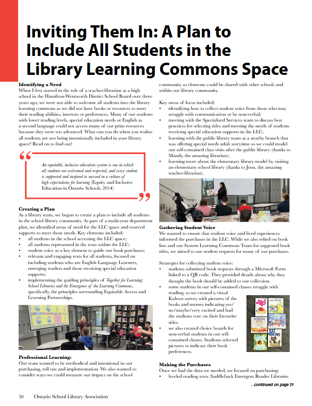 - Inviting Them In: A Plan to Include All Students in the Library Learning Commons Space