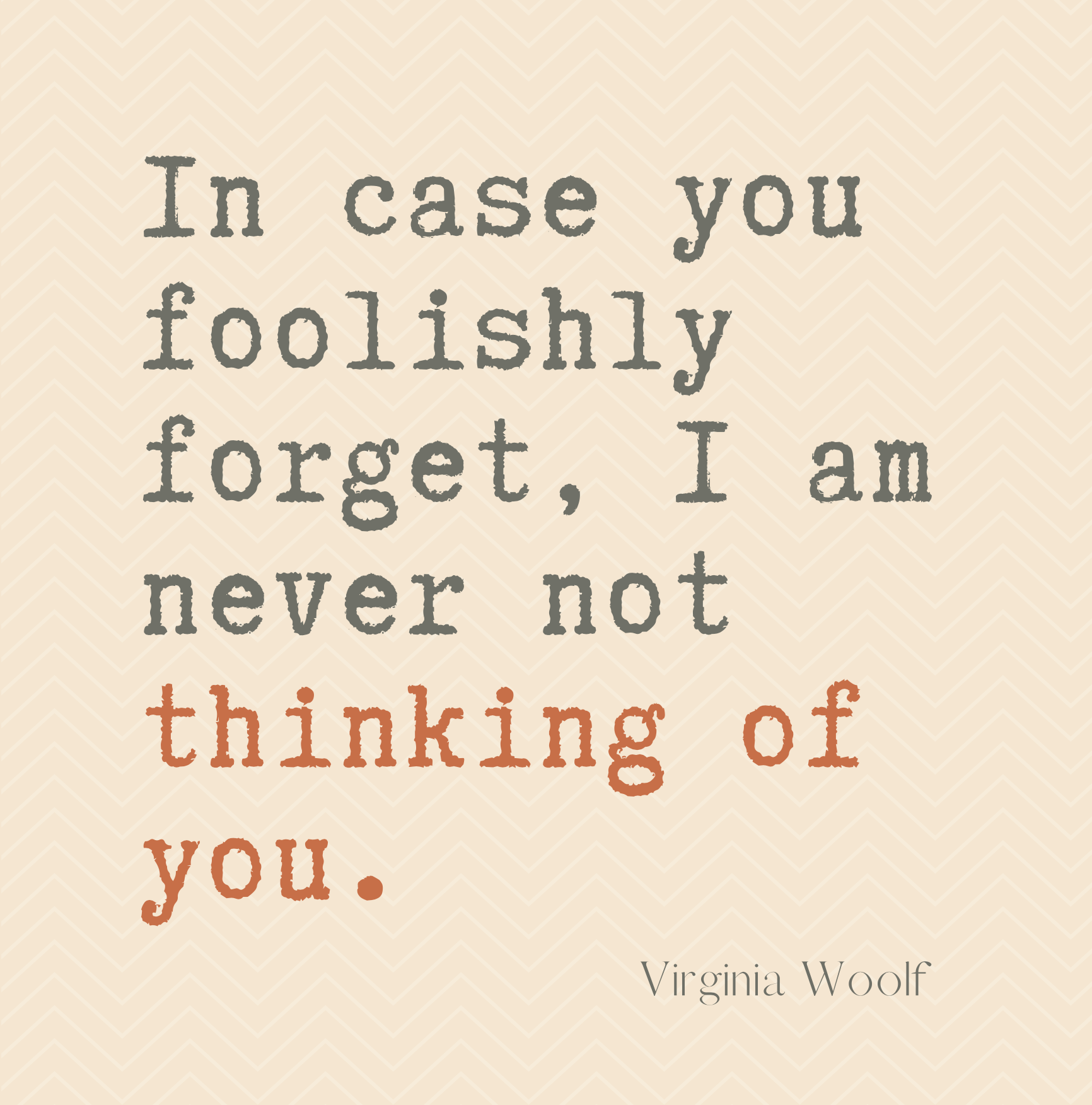 "In case you foolishly forget, I am never not thinking of you." - Virginia Woolf.