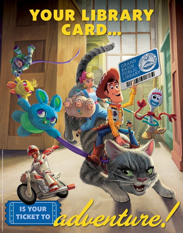 The toys are at your library and ready for adventure! Woody, Buzz, and friends know getting a library card is the ticket to fun. From borrowing books, movies, or museum passes, to enjoying story time or group play, there’s no end to the exciting activities your community can access with a library card. In Disney•Pixar’s “Toy Story 4”, coming to theaters nationwide on June 21st, Woody has always felt confident about his place in the world and that his priority is taking care of his kid, whether that’s Andy or Bonnie. But when Bonnie adds a reluctant new toy called “Forky” to her room, a road trip adventure alongside old and new friends will show Woody how big the world can be for a toy.
