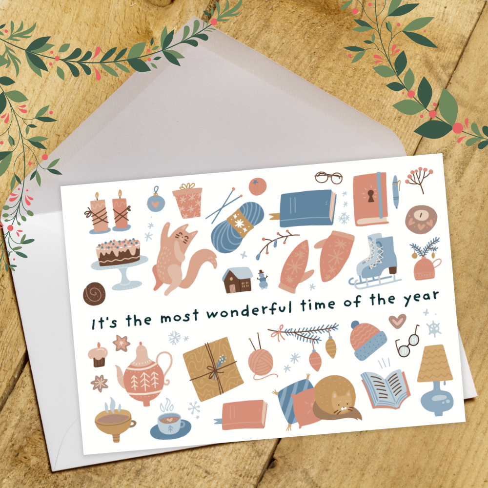 It's the most wonderful time of the year, with fluffy socks, hot chocolate, new books and cozy nights at home. Share your holiday cheer with a greeting card. Designed by The Library Marketplace.