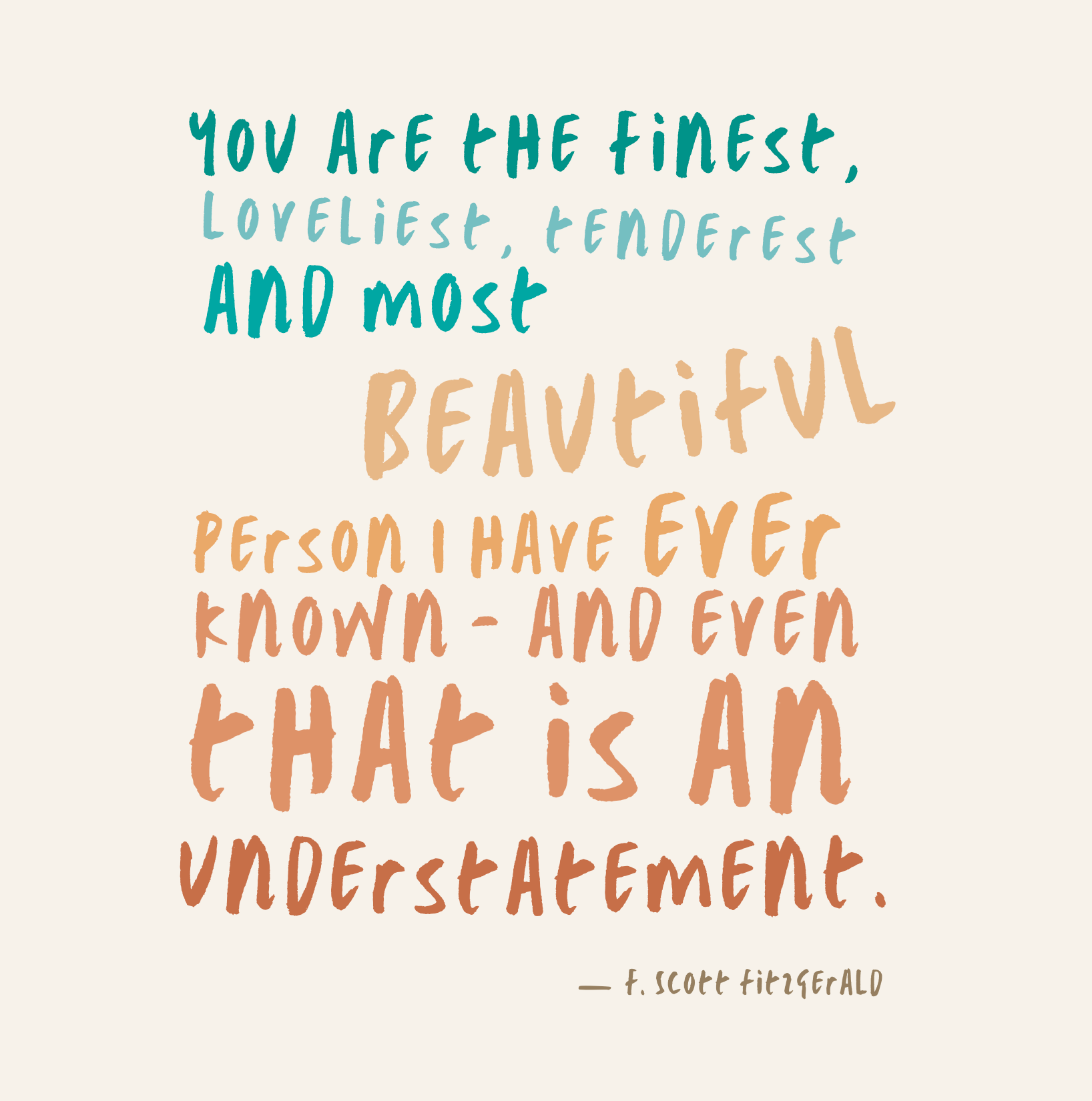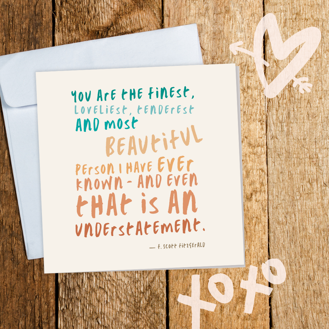 "You are the finest, loveliest, tenderest and most beautiful person I have ever known - and even that is an understatement." - F. Scott Fitzgerald.